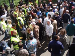 Starší z duchovních v průběhu projevů informoval Romy, že policie zadržuje na uzávěrách několik stovek Romů z okolí, kteří "jim jedou na pomoc". AKT tuto informaci ověřil na velícím štábu, který ji dementoval. Informace byla poté předávána účastníkům shromáždění při osobním kontaktu. Duchovní nebyl spokojen s činností AKT a proto jeho členy vyzval, aby zanechali své činnosti, aby nerušili bohoslužbu.