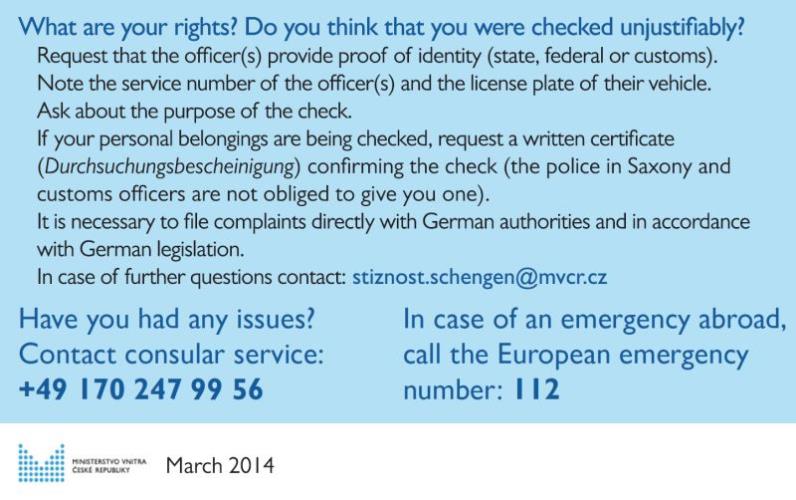 However, in the federal states of Saxony and Bavaria, there is an exception according to which the police authorities are allowed to check the identity of a person in near-border areas and other selected places (such as highways) at their discretion.
