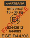 - značení „Universal“ znamená, že schválená sedačka je použitelná téměř v každém autě