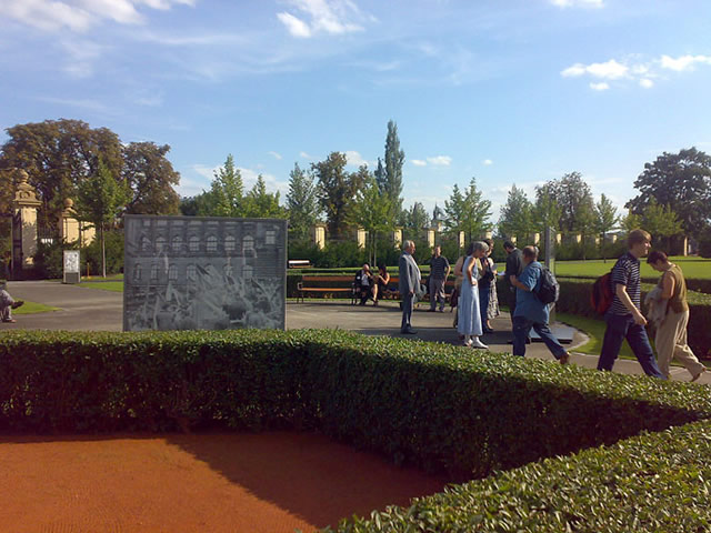 Expozice výstavy je umístěna v zahradě Strakovy akademie