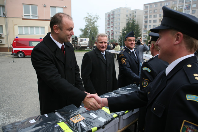 Ministr na návštěvě mobilního Czech POINT stánku Předávání ochranných oděvů