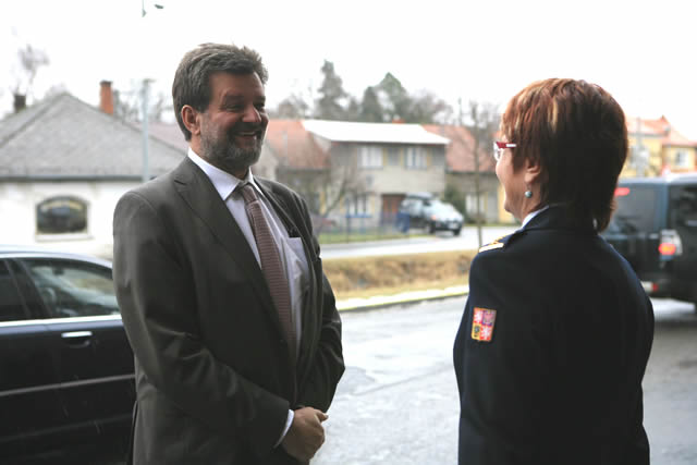 Krajská ředitelka HZS Jarmila Čičmancová vítá ministra vnitra Jana Kubice