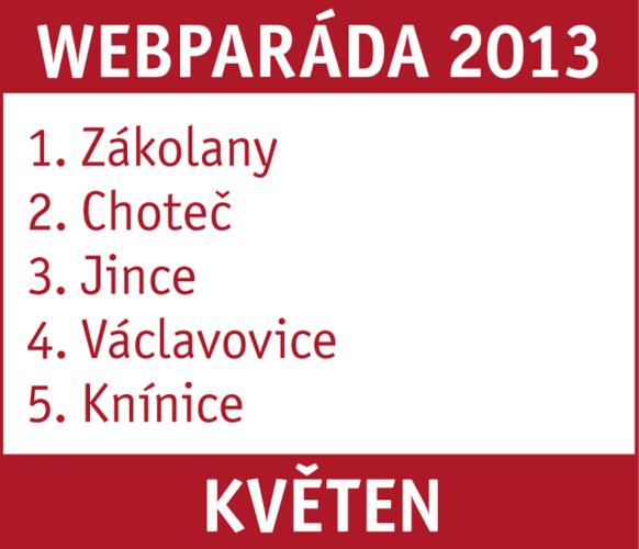 Do Webparády minule přibyly obce Jince a Knínice. Zatímco někteří se s pěkným počasím ponořili do opečovávání chalup, zahrádek či automobilů, porotci promazali kolečka počítačových myší a vycídili monitor, aby zhodnotili webové stránky. Příště už se bude vyřazovat, proto podpořte své favority, čas na to máte do 11. června! A jak se vyvíjí pořadí ve Webparádě? Na prvních dvou místech nedošlo ke změně, Jince odsunuly Václavovice na čtvrté místo a páté místo získaly Knínice u Boskovic.
