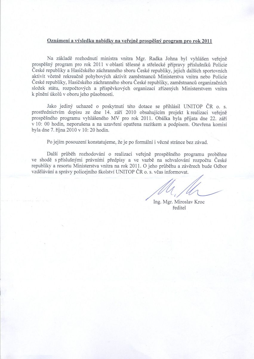 Veřejně prospěšný program v oblasti tělesné přípravy příslušníků Policie České pro rok 2011