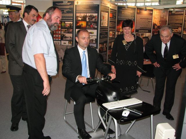 1. Ministr Langer a policejní prezident Martinů přicházejí k expozici 2. Ivan Langer na trenažeru 3. Prohlídka expozice 4. Stánek Ministerstva vnitra 5. Nová policejní vozidla 6. Hasičská technika