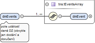 <xs:element name="dmEvents" type="tns:tEventsArray"><xs:annotation><xs:documentation>pole událostí dané DZ (obvykle jen dodání a doručení)</xs:documentation></xs:annotation></xs:element>