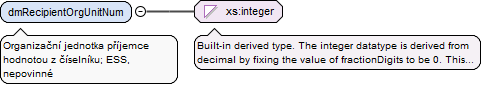 <xs:element name="dmRecipientOrgUnitNum" type="xs:integer" nillable="true"><xs:annotation><xs:documentation>org. jednotka příjemce - z číselníku ESS</xs:documentation></xs:annotation></xs:element>