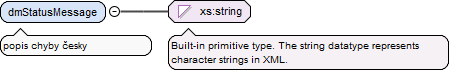 <xs:element name="dmStatusCode" type="xs:string"><xs:annotation><xs:documentation>kód chyby nebo stavu (0000 - bez chyby, 0001 - odložení zprac.)</xs:documentation></xs:annotation></xs:element>