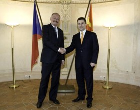 Předseda Senátu P. Sobotka a předseda vlády Makedonie N. Gruevsky.Předseda Senátu Přemysl Sobotka přijal 10. února předsedu vlády Republiky Makedonie Nikolu Gruevského. Ve svém úvodním vystoupení P. Sobotka zdůraznil, že dějiny obou států mají hodně společného. Oba se v minulosti musely potýkat s velmocenskou arogancí některých svých sousedů, která ohrožovala svobodu a nejednou dokonce i samotnou existenci obou národů. Zároveň makedonskou delegaci ujistil, že Česká republika podporuje vstup Makedonie do Evropské unie. „Považuji v dnešní době stále rychlejšího procesu evropské integrace Makedonie za zemi, jejíž chystaný vstup do Evropské unie bude vzájemně prospěšný pro obě strany,“ řekl ve svém projevu předseda Senátu. „Jsem bytostný optimista, a tak věřím, že i Makedonie překoná zbývající problémy a již brzy ji uvítáme mezi členskými státy Evropské unie. Z české strany máte plnou podporu,“ dodal na závěr svého vystoupení P. Sobotka. Velkou část rozhovoru během přijetí podle P. Sobotky zabrala ekonomická témata, zvláště daňové reformy. Předseda Senátu ocenil odvahu, s jakou Makedonci k reformám přistoupili. „Někteří politici ze zavedených a bohatších evropských zemí by si z Makedonie měli vzít příklad,“ dodal Přemysl Sobotka. Oba politici se na závěr shodli, že zájmem Evropy je, aby se celý Balkán stál součástí evropských struktur.