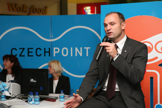 Ministr Langer a hejtman Bradík Ministr Langer o Czech POINTu Ministr Langer s úřednicí Czech POINTu Mobilní Czech POINT Promotér informující občany Propagační materiály Czech POINTu Ukázka fungování Czech POINTu Úřednice Czech POINTu