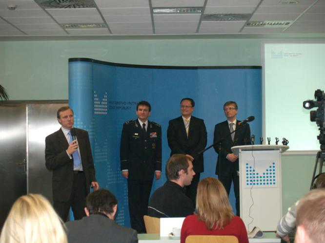Generální ředitel České pošty Petr Sedláček Hovoří náměstek ministra vnitra Zdeněk Zajíček Přednášející na tiskové konferenci Tisková konference